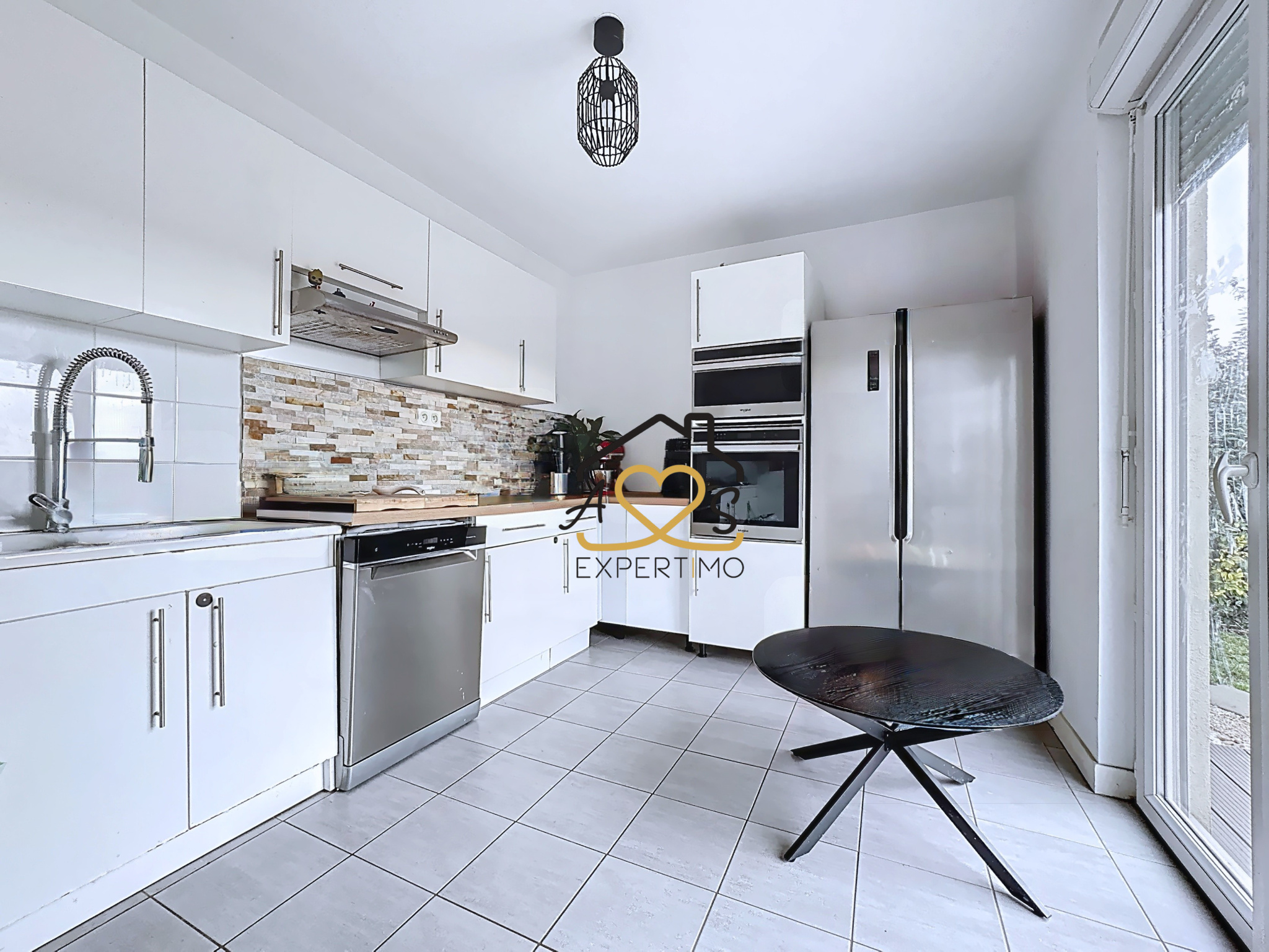 Cuisine de 9,70 m2 semi ouverte sur le salon / séjour avec porte-fenêtre donnant sur la terrasse exposée Est, et le jardin…